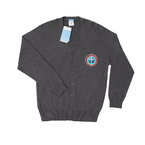 Knitted Cardigan with embroidered school logo.